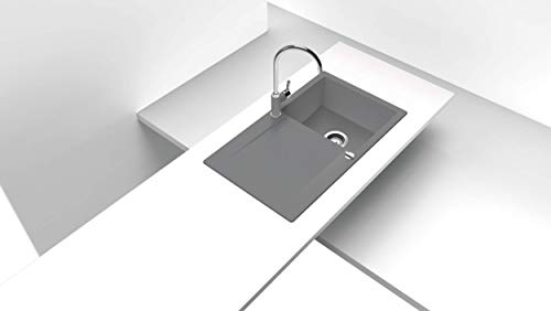 Schock: il lavello in composito di quarzo di alta qualità 86 x 50 cm di colore grigio chiaro CRISTALITE con un singolo lavabo e una superficie di scolo integrata è una vera e propria attrazione in cucina.