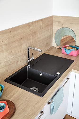 Reversibile: il lavabo in granito è inclinato su entrambi i lati sullo scarico. Il lavello può essere montato a sinistra o a destra. I fori preforati consentono una facile installazione dei rubinetti.