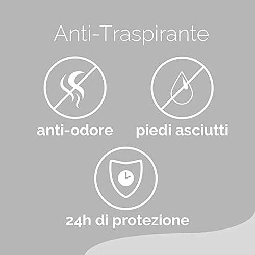 ANTI-ODORE: La formula deodorante è stata studiata per neutralizzare il cattivo odore che può insorgere sulla pelle dei piedi e creare notevoli disagi. Grazie alla sua delicata e leggera fragranza, il prodotto lascia la pelle asciutta, morbida e pulita per una piacevole sensazione di benessere e freschezza