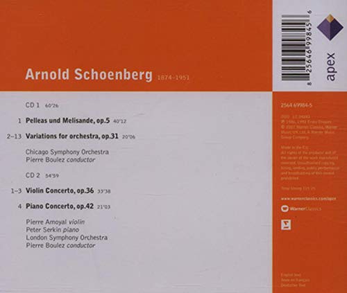 Schonberg: Pelleas und Melisande, Variations, Violin Concerto & Piano Concerto - APEX
