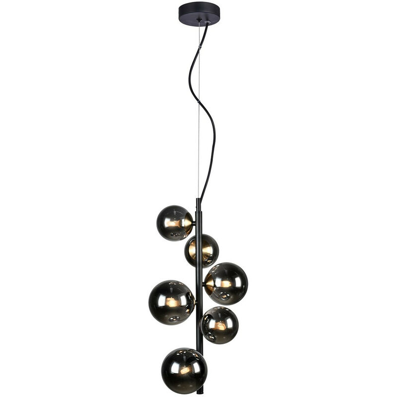 Schuller ASTROS Plafoniera a sospensione a globo con 6 luci, nero opaco, grigio specchio, G9 | Finitura: nero opaco, grigio specchio | Materiale: metallo, vetro | Classificazione IP: IP 20 | Altezza: 56cm | Altezza minima: 65 cm | Altezza massima: 200 cm | Larghezza: 28 cm | Profondità: 23cm | Tipo di lampada: G9 | Peso: 1,5 kg | Potenza (massima): 6x28W