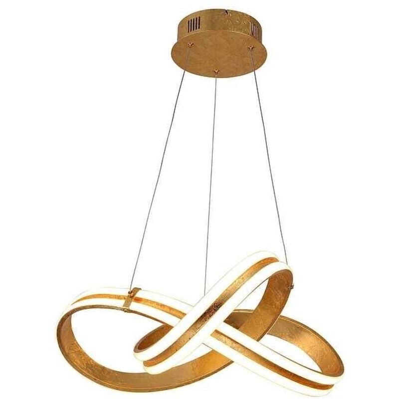 Schuller Lazas - Lampada a sospensione a LED integrata, foglia d'oro | Finitura: opale, foglia oro | Materiale: silicone, acciaio, alluminio | Altezza (cm): 18 | Altezza min (cm): 40 | Altezza massima (cm): 120 | Diametro (cm): 52 | Potenza (max): 56W | Classe: Classe 1 | Lumen: 2700