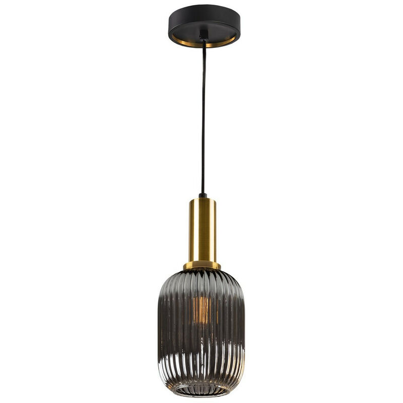 Schuller NORMA Plafoniera a sospensione Globe nera, vetro ottone, E27 | Finitura: nero, ottone, vetro fumé | Materiale: metallo, vetro | Altezza: 35cm | Altezza minima: 45 cm | Altezza massima: 200 cm | Diametro: 14 cm | Tipo di lampada: E27 | Lampadina inclusa: Sì | Peso: 1,27 kg | Potenza (massima): 60W
