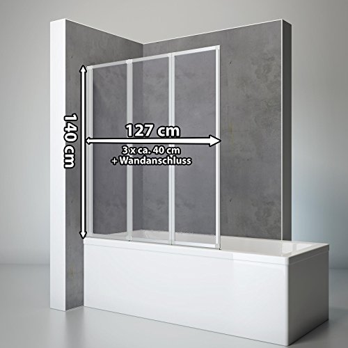 Schulte parete per vasca da bagno l.127 x a.140 cm, colore alluminio naturale, vetro sopravasca da bagno, 3 ante pieghevoli (47+40+40), girevole 180° sulla parete, vetro polistirolo acrilico 3 mm
