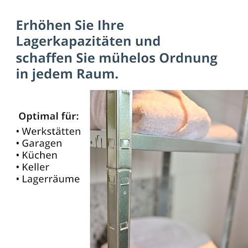 Made in Germany: i nostri scaffali a incastro prodotti in Germania offrono una struttura speciale una robusta stabilità durante la conservazione di vari prodotti. Lo scaffale è perfetto per officina, garage, cantina o cucina