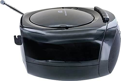 SCHWAIGER 658026 Lettore CD con cassette e radio MP3 Connessione USB Radio FM Cuffie AUX Boombox Funzionamento a rete e a batteria Display portatile nero