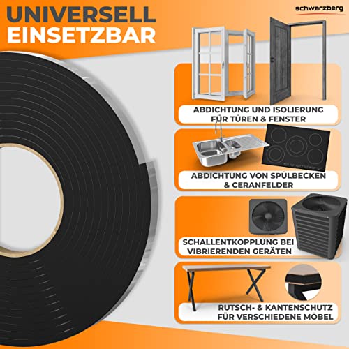 SCHWARZBERG Nastro sigillante autoadesivo, universale, 12 mm x 3 mm x 10 m, nastro termico isolante per finestre e porte, schiuma di gomma cellulosa