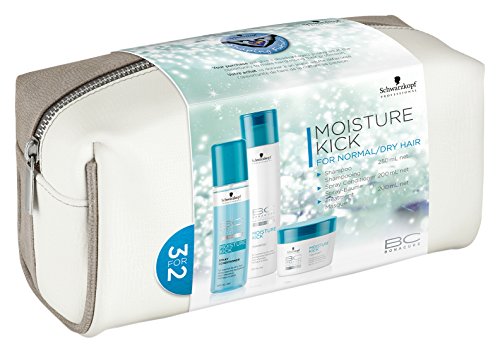 Contenuto: 1 flacone di shampoo BC Moisture Kick 250 ml, 1 flacone di balsamo BC Moisture Kick 200 ml, 1 lozione Moisture Kick 200 ml.