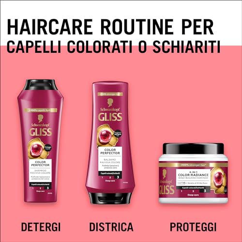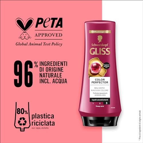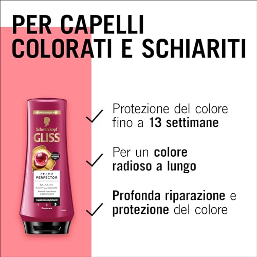 Colore brillante: Il balsamo per la cura capelli Gliss nutre e offre una profonda riparazione dei capelli, lasciandoli morbidi, naturalmente luminosi e dal colore vibrante