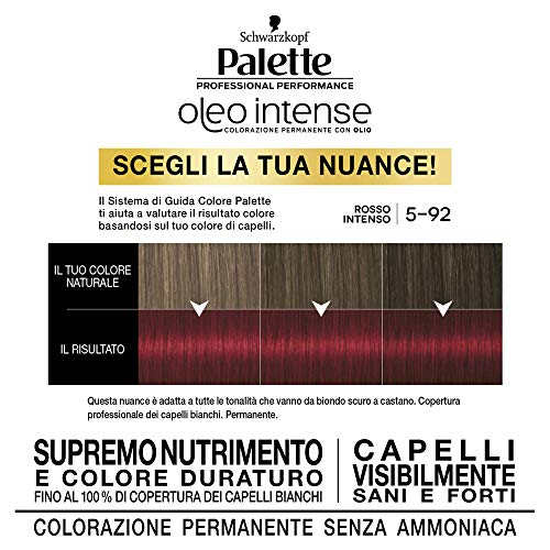 Schwarzkopf, Palette Oleo Intense, Colorazione Permanente con Olio, Tinta per Capelli, Crema Colorante Senza Ammoniaca, Copertura dei Capelli Bianchi, Tonalità 5-92 Rosso Intenso