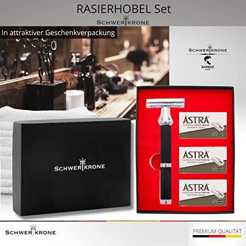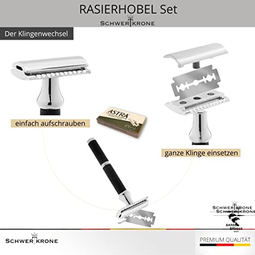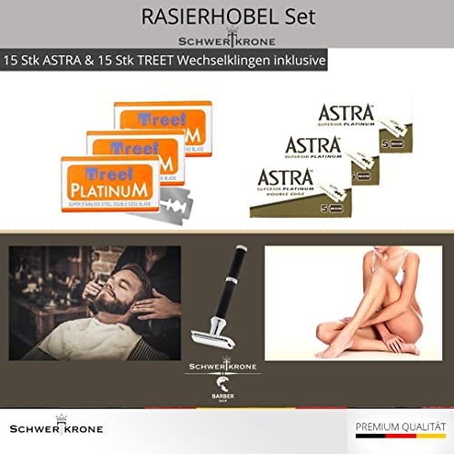 Schwertkrone Rasoio di Sicurezza Uomo + 15 Lamette Astra + 15 Lamette Treet di Ricarica a Doppio Taglio e Rivestite