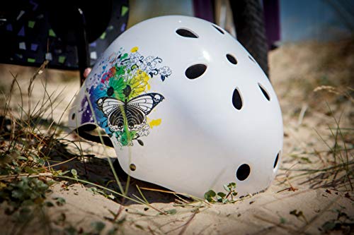 Usa lo skate o il monopattino e pedala in sicurezza con il casco Schwinn con motivo farfalla, utilizzabile per BMX, skateboard, monopattini per trick o pattini