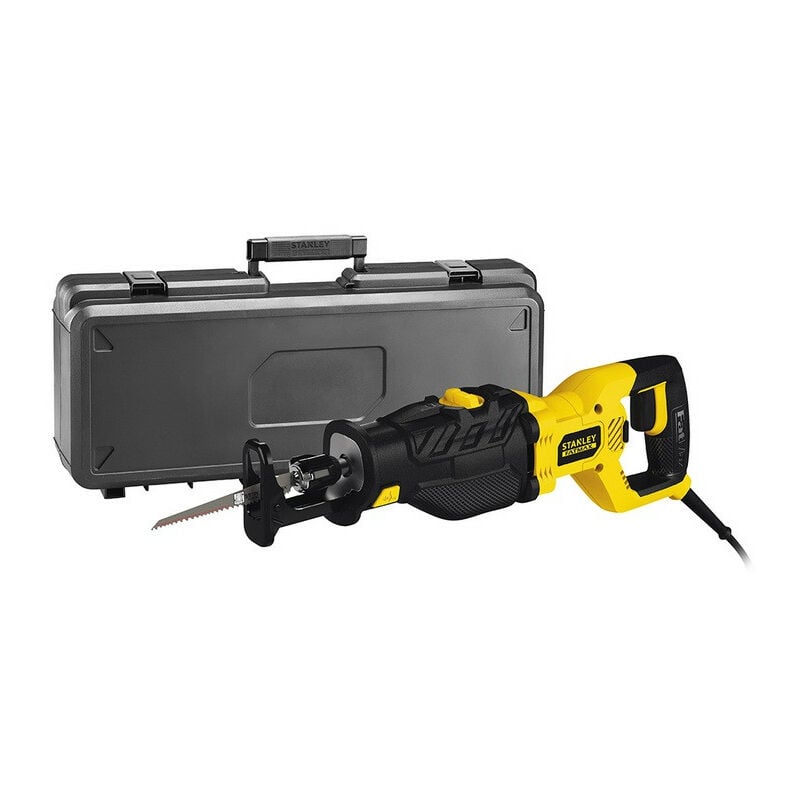 Stanley - Sega a sciabola 1050W 28mm - FME365K-QS I vantaggi di questa sega a sciabola Stanley FME365K-QS sono: - Motore da 1050W che fornisce alta potenza per una vasta gamma di applicazioni - Azione orbitale per un taglio veloce nel legno - 3.500 cps/mn di velocità e 28 mm di lunghezza della corsa per tagli veloci ed efficienti - Soletta regolabile senza attrezzi per controllare la profondità di taglio e aumentare la durata della lama - Cambio lama senza attrezzi per un cambio rapido e facile della lama - Cavo di gomma di 4m - Parte della gamma Stanley Fatmax a filo Specifiche tecniche: Lunghezza: 500 mm Altezza: 150 mm Profondità: 80 mm Velocità: 0 - 3.500 rpm Peso: 3,74 Kg Potenza: 1050 W Lunghezza della corsa: 28 mm Capacità massima di taglio del legno: 275 mm Capacità massima di taglio del metallo: 117 mm Capacità massima di taglio plastica: 150 mm La sega a sciabola Stanley FME365K-QS viene fornita con: - Caso 2 anni di garanzia