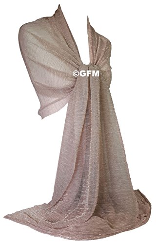 Marchio GFM Molto bello Lussuoso luccicante Sciarpa scintillante o Hijab. Il tessuto è morbido con texture crepe. Dimensioni approssimative: Lunghezza: 180 cm Larghezza 70 cm. Materiale: poliestere. Può essere usato come Hijab o Sciarpa da sera, Matrimoni, Proms, Damigelle o in occasioni speciali. Orlo a taglio libero non cucito. Questo tipo di materiale non ha bisogno di cuciture per l'orlo
