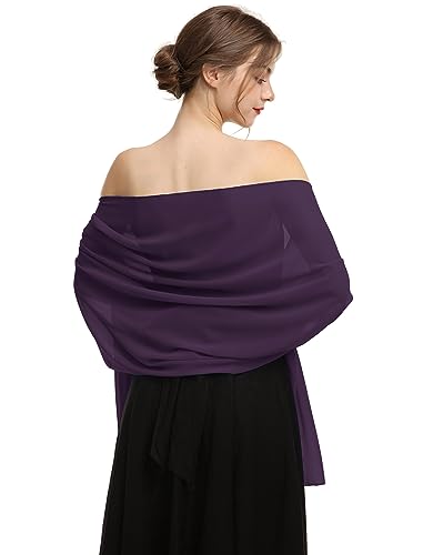 Scialli e involucri in chiffon per abiti da sera da donna elegante sciarpa morbida sciarpa da sposa stola da sposa, Prugna (chiffon), taglia unica