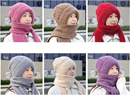 Sciarpa con cappuccio antivento con protezione per le orecchie integrata, cappello con protezione per l'orecchio caldo e spesso lavorato a maglia, set di sciarpe per cappello (Grigio)