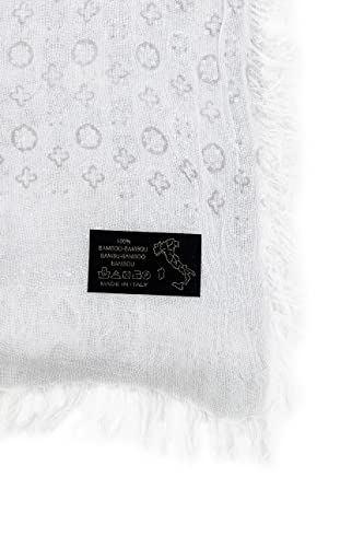 Sciarpa Donna Uomo a Stola Rettangolare in Fibra di Bambù con Motivo (Bianco, Z816)