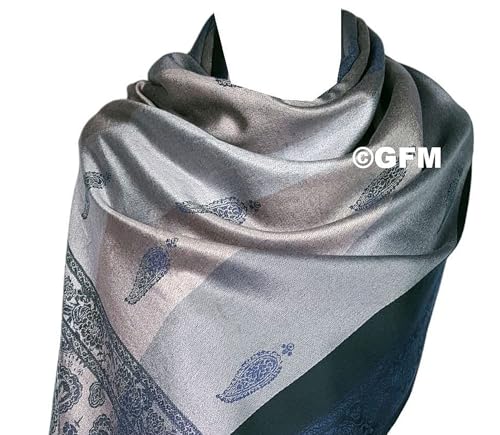 GFM Sciarpa in stile Pashmina in fantasia floreale, piume e paisley. Dimensioni approssimative: lunghezza 180 cm + 10 cm Nappe su ciascun lato. Larghezza 70 cm Materiale: Viscosa
