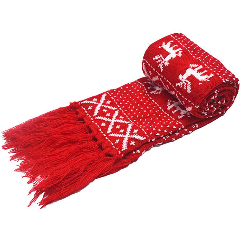 si adatta a donne, uomini e adolescenti. La lunga lunghezza consente di indossare e modellare la sciarpa in vari stili per adattarsi al tuo abbigliamento Sciarpa lavorata a maglia alla moda con un simpatico motivo a fiocco di neve e renna, nappa in tinta, ottimo regalo di Natale. Materiale: 100% acrilico (tessuto simile al cashmere);