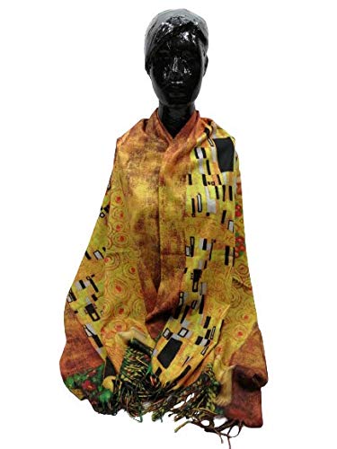 Sciarpa viscosa doppia stampa Klimt il bacio regalo donna compleanno natale arte moda stola foulard Pashmina Coprispalle