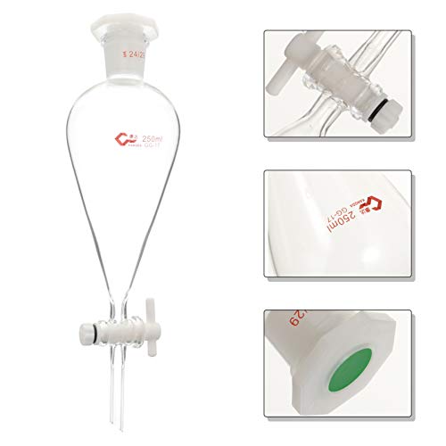 Scicalife Imbuto Separatore in Vetro- Imbuto Separatore da 250 Ml- Realizzato in Vetro Borosilicato Premium Resistente Alla Corrosione E Alle Alte Temperature