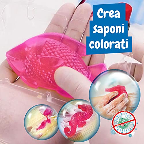 【Sapone Perfumati con Diverse Forme】Combina i stampi per sapone forniti con il laboratorio di esperimenti scientifici per bambini e crea fantastici saponi con forme diverse: pesce, conchiglia e stella marina.