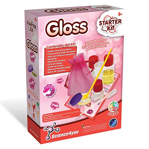 Science4You - Starter Kit Lipgloss in Spagnolo - Gioco scientifico ed educativo - Dermatologicamente Testato - 2 Esperimenti semplici e Divertenti per Bambini 8 Anni, Multicolore