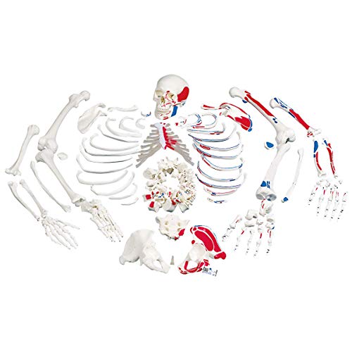 3B Scientific A05/2 Scheletro con Raffigurazione dei Muscoli, Non Montato + app gratuita di anatomia - 3B Smart Anatomy