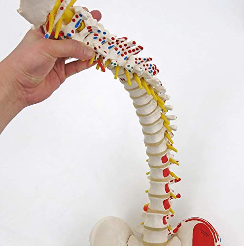 3B Scientific A58/3 Colonna Vertebrale Flessibile Classica Dipinta, con Tronchi del Femore Mobili e Illustrazione dei Muscoli + software gratuito di anatomia - 3B Smart Anatomy