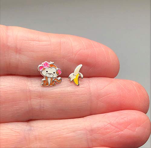 Scimmietta e banana - Orecchini in argento Sterling