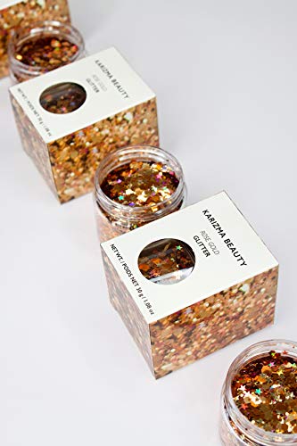 ✮ KARIZMA: Crea un po 'di magia 24k e risplendi come una superstar con il nostro Scintillio Grosso Oro Rosa. L'oro rosa è un mix metallico di forme e speckles di oro rosa. I nostri glitter sono realizzati con pigmenti ad alta intensità e lucentezza metallica. La collezione di glitter chunky presenta 30 g di glitter Karizma.