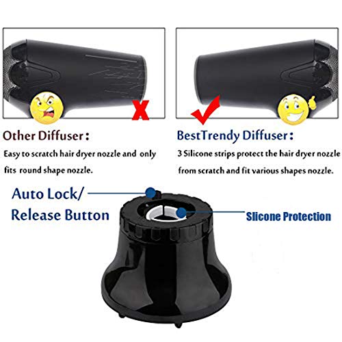 Questo accessorio diffusore per asciugacapelli è adatto per ugelli con diametro da 4,3 cm a 6,6 cm. Adatto per quasi tutti gli asciugacapelli. Si prega di verificare la dimensione del vostro asciugacapelli prima di ordinare.