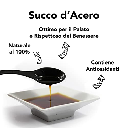 Sciroppo d'Acero BIO - 250 ml - Maple Syrup Bio, Sciroppo Acero Canadese per Pancake e Waffle, Naturale Potere Dolcificante, Indice Glicemico Più Basso Del Saccarosio