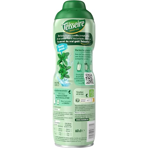 Sciroppo di Menta Glaciale Teisseire per Bevanda Rinfrescante, Cocktail, Bottiglia da 60 cl