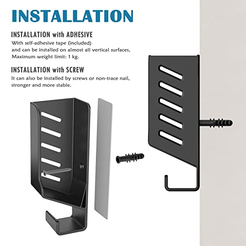 DUE MODI DI INSTALLAZIONE - INSTALLAZIONE con ADESIVO (Limite massimo di peso: 1 kg), non danneggia il muro. Oppure INSTALLAZIONE con VITE, più forte e stabile.