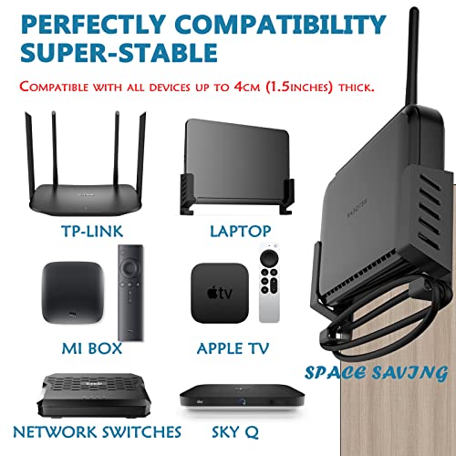 SciuU Supporto da Parete Universale per TV Box/Router/Switch di Rete/Modem/Laptop, compatibile con TP-Link, Mi Box, Apple TV, Sky Q, Multiuso Scaffale per Dispositivi Spessore < 4cm, Nero