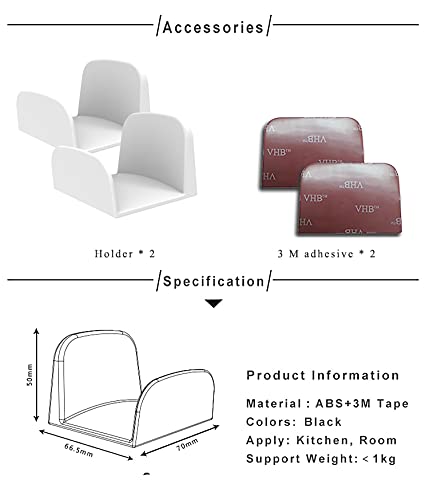 INSTALLAZIONE FACILE - Con nastro biadesivo 3M e può essere installato su quasi tutte le superfici verticali, su parete, scrivanie, mensole, armadi, superfici vetro ecc. Non sono necessarie viti, non danneggia il muro. Limite massimo di peso: 1 kg.