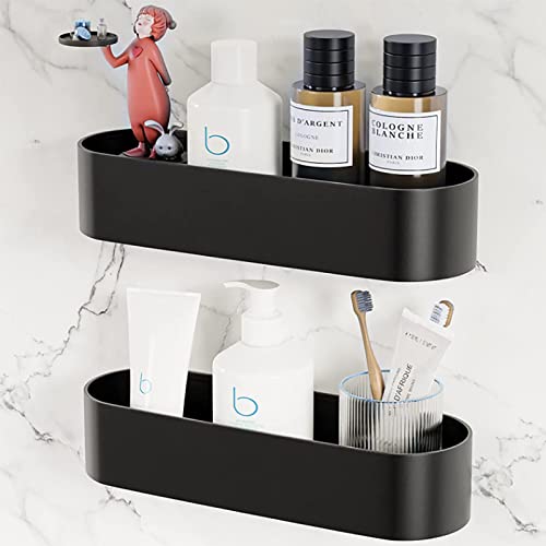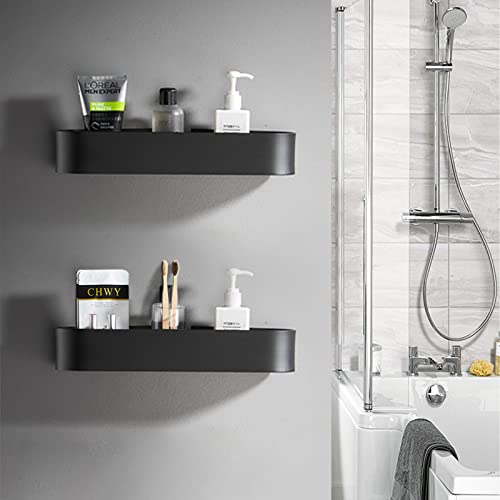 SCLLNDA 2 Pezzi Mensole Bagno Senza Foratura Nero,Mensola da Doccia Adesiva,Autoadesiva, OrMensola Bagno Autoadesivo di bagnoschiuma Shampoo Mensole Docciaganizzatore per Doccia Senza Fori,28cm