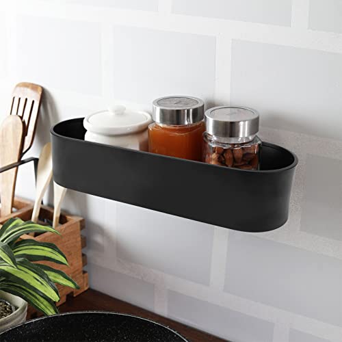 Decorazione moderna del bagno: mensola nera cucina adesivo, classica ed elegante, in linea con lo stile moderno della cucina e del bagno, lunghezza della mensola da doccia 28,5, larghezza 9 cm, altezza 6 cm, che consente di razionalizzare l'uso dello spazio, bottiglie e barattoli facilmente collocabili.