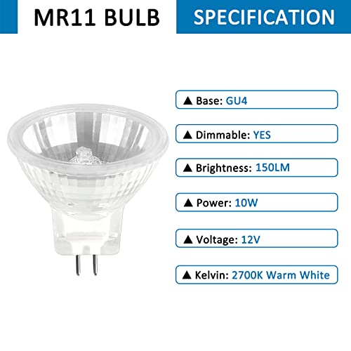 SCNNC Lampadina GU4 12V Alogena 10W, 150LM Bianco Caldo 2700K, Dimmable MR11 Alogena Riflettore Con Vetro Coperchio Frontale per Illuminazione da Incasso, Illuminazione del Paesaggio, confezione da 6