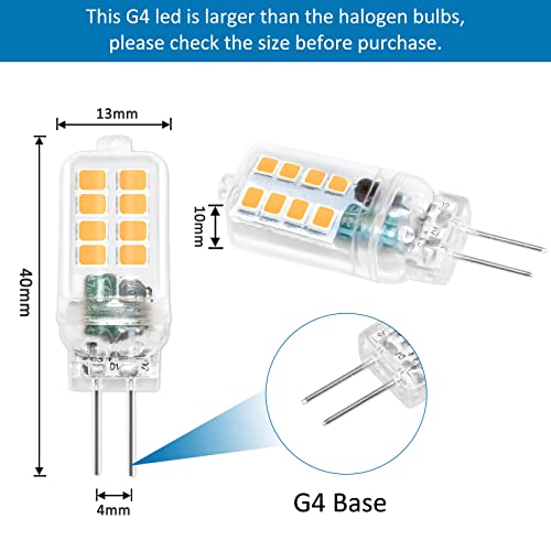 ✦【40x13x11 】 Doppio pin G4 standard, può essere facilmente installato in una varietà di lampade con attacco G4. Dimensioni 40x13x11MM, leggermente più grandi delle lampadine alogene G4, assicurati che le dimensioni corrispondano al tuo dispositivo prima dell'acquisto.