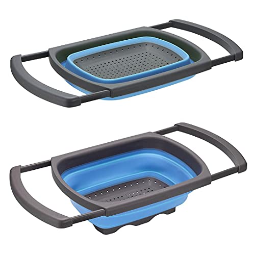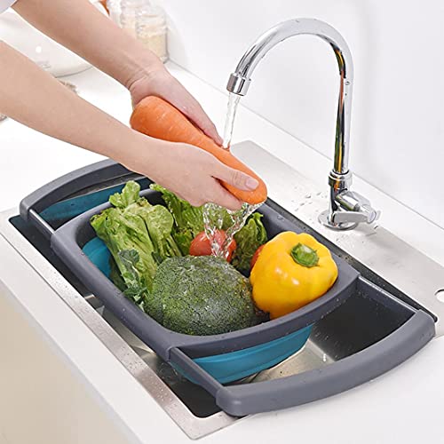 Scolapasta pieghevole estensibile da cucina, colino espandibile per alimenti, verdure, frutta e verdura con manici estensibili, colore: blu