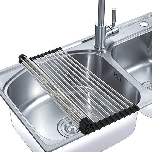 KYG Scolapiatti acciaio antiruggine Multifunzione Over lavello Roll-up Piatto Stendino pieghevole e staccabile