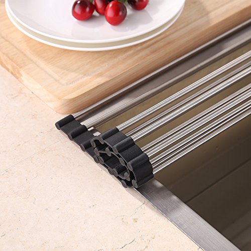 KES Scolapiatti Roll-Up Multiuso Pieghevole 13.4" da 20", SUS 304 Acciaio Inox, NERO, PDR6S3451-BK