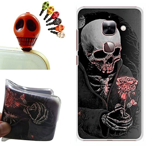 Sconosciuto Le Max 2 Custodia,LeEco Le Max 2 Cover, Gallery88 [Tappi Anti-Polvere] Custodia in TPU Gel Silicone Case per LeEco Le Max 2 (5.7 Pollici) -(Cranio Che Tiene Un Fiore)