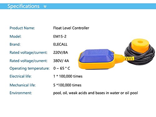 Sconosciuto Elecall EM15 - 2 3 m controller interruttore a galleggiante liquido fluido livello dell' acqua interruttore a galleggiante sensore Contattore