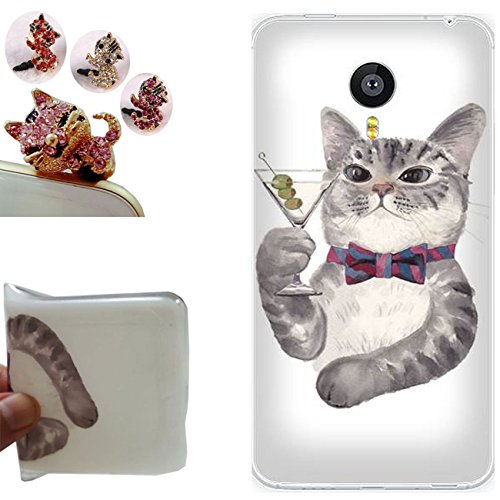 Sconosciuto Meizu MX4 Custodia,Meizu MX4 Cover, Gallery88 [Tappi Anti-Polvere] Custodia in TPU Gel Silicone Case per Meizu MX4 (5.36 Pollici) -(Cat con Una Tazza)