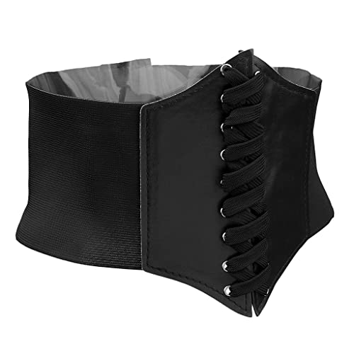Sconosciuto Moda Donne Pelle Faux Larga Fascia Cintura In Vita Con Fibbia Elastica Costume Bigiotteria - Negro