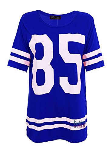 Sconosciuto Womens Stampa 85 Varsity T Shirt Oversize Baseball Americano Baggy Top Jersey 8 - 14 Blue M/L (44-46)