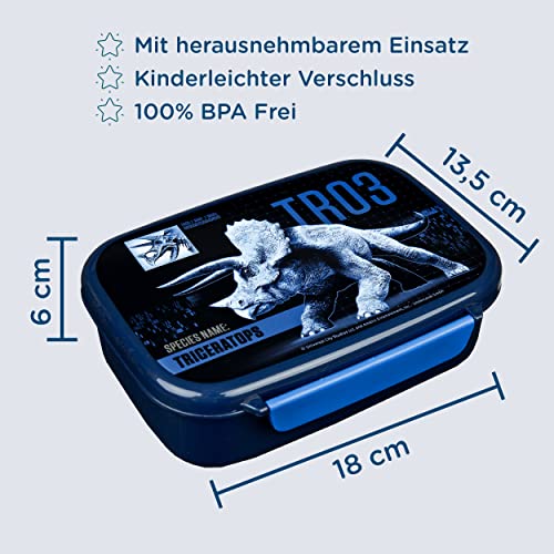 Jurassic World Contenitore per il pranzo per bambini - Sul contenitore per il pranzo è raffigurato un dinosauro di Jurassic World. I bambini usano la scatola come contenitore per il pranzo, contenitore per il pranzo per l'asilo, per il pranzo o per le pause per la scuola.